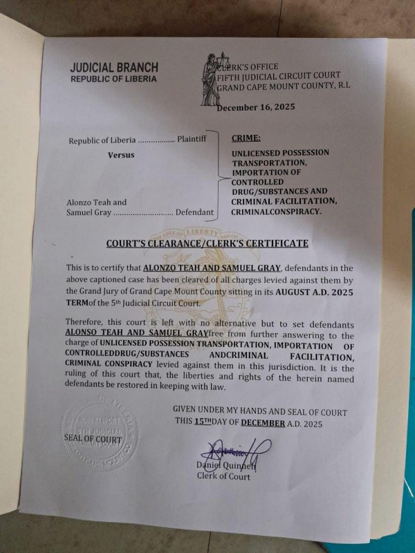 Sierra Leone/Liberian Artist Alonzo Teah Abasi who was arrested earlier this year, shared Court’s Clearance/Clerks Certificate on his Facebook Page